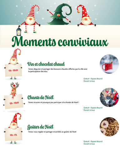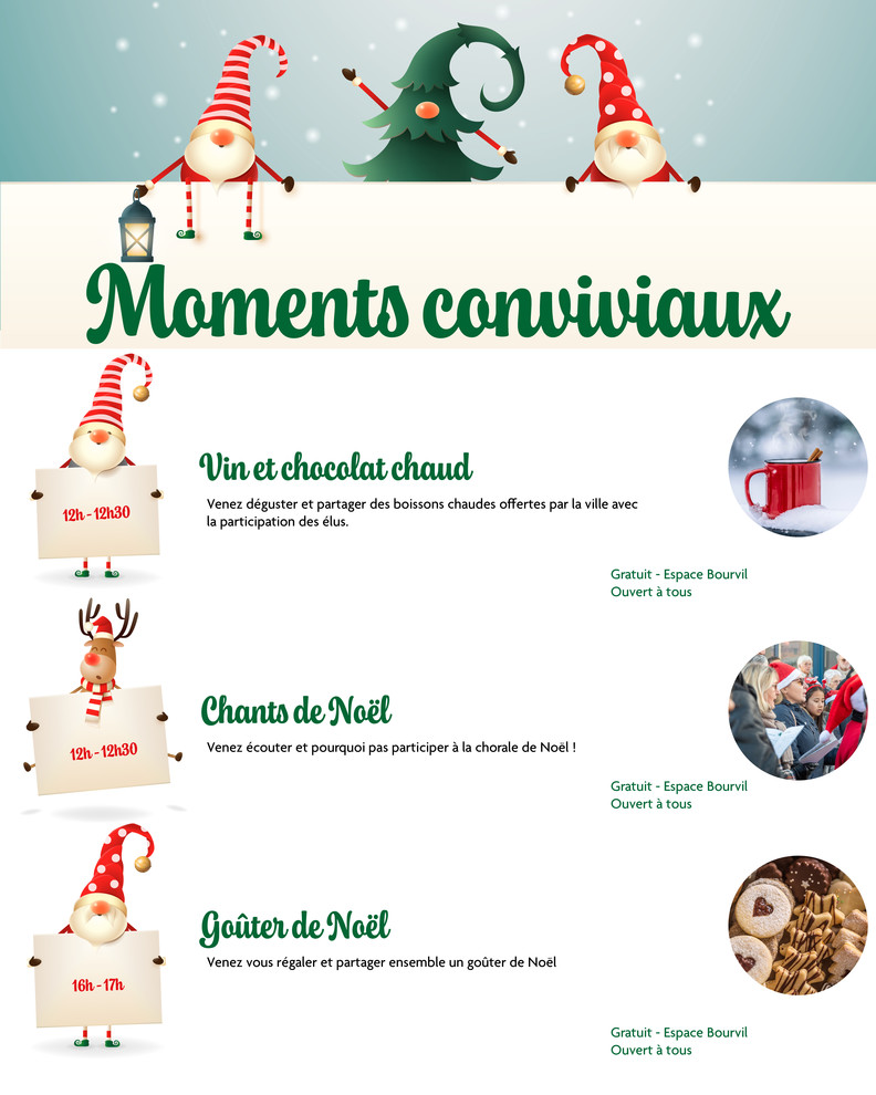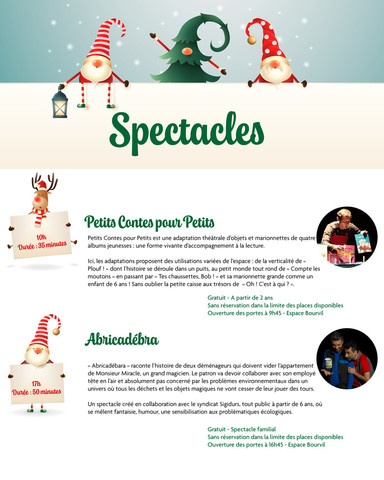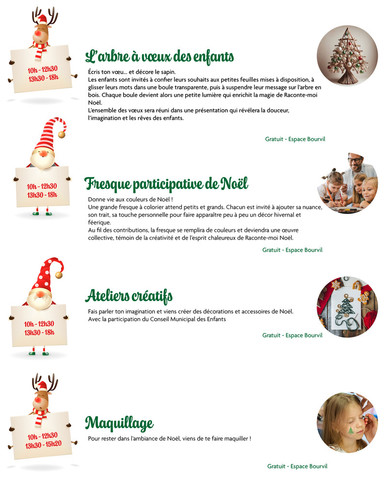 Venez vivre une journée dans l'ambiance de Noël à l'Espace Bourvil : spectacles, animations, ateliers et moments convivaux sont prévus pour la journée