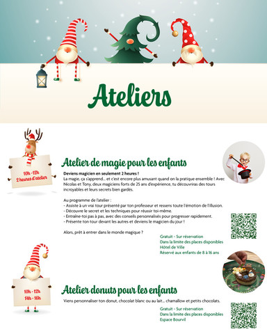 Les ateliers sont offerts par la Mairie, sur inscription et dans la limite des places disponibles.